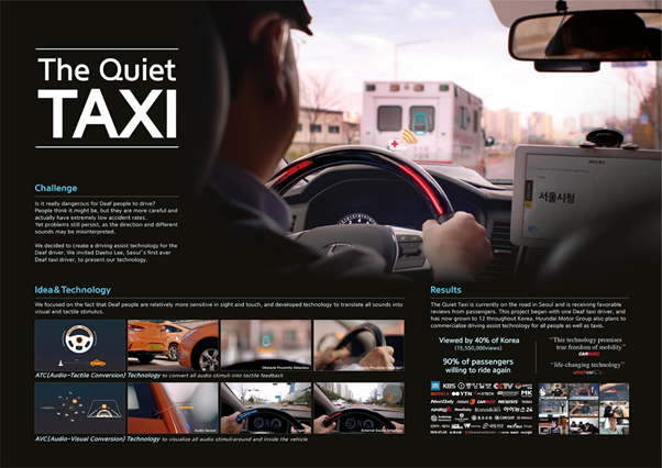 Design 부문에서 Gold를 수상한 Innocean Worldwide의 The Quiet Taxi 입니다.