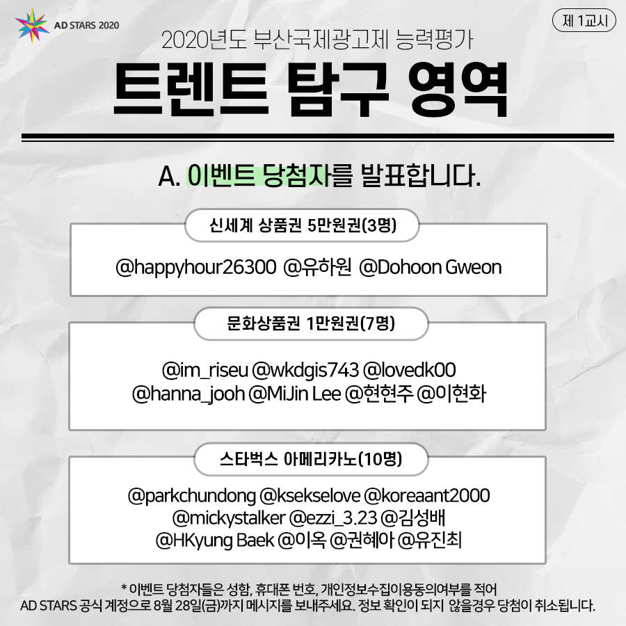 < 2020 부산국제광고제 트렌드탐구영역 이벤트 당첨자 발표 > 본문