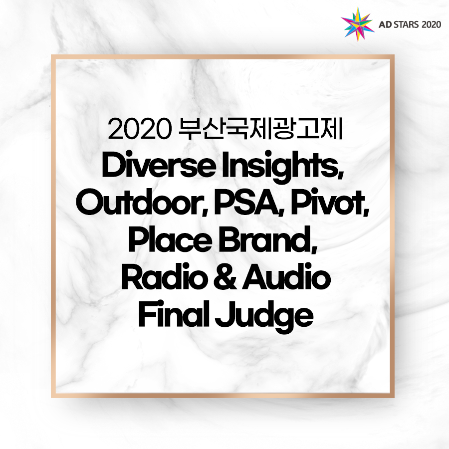 < Diverse Insights, Outdoor, PSA, Pivot, Place Brand, Radio & Audio부문 Final Judge >