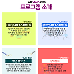 프로페셔널한 그들의 연결고리애드 아카데미 전 세계의 크리에이티브가 모이는 AD STARS 2016 오감을 자극하는 출품작들을 보는 즐거움 외에도 많은 즐길 거리가 가득한데요,그 중 많은 분들이 기대하고 있는 것 중 하나가 있죠. 바로 본 행사 기간에만 열리는 특별 세미나 입니다. 2016 부산국제광고제 AD ACADEMY 애드 아카데미는 국내 현업 광고인이나 광고, 마케팅, 디자인 관련 학과의 대학생들이체계적인 광고 교육과 함께 노하우를 공유할 수 있는 프로그램입니다. 예비 광고인들에게는 현업의 트렌드와 취업을 위한 멘토링을 제공받을 수 있으며,광고인은 개인 업무역량 강화 및 네트워킹을 할 수 있는 좋은 기회겠죠. 광고인, 대학생 부문으로 각각 나뉘어 진행되는 애드 아카데미의 모집 내용은 다음과 같습니다..
