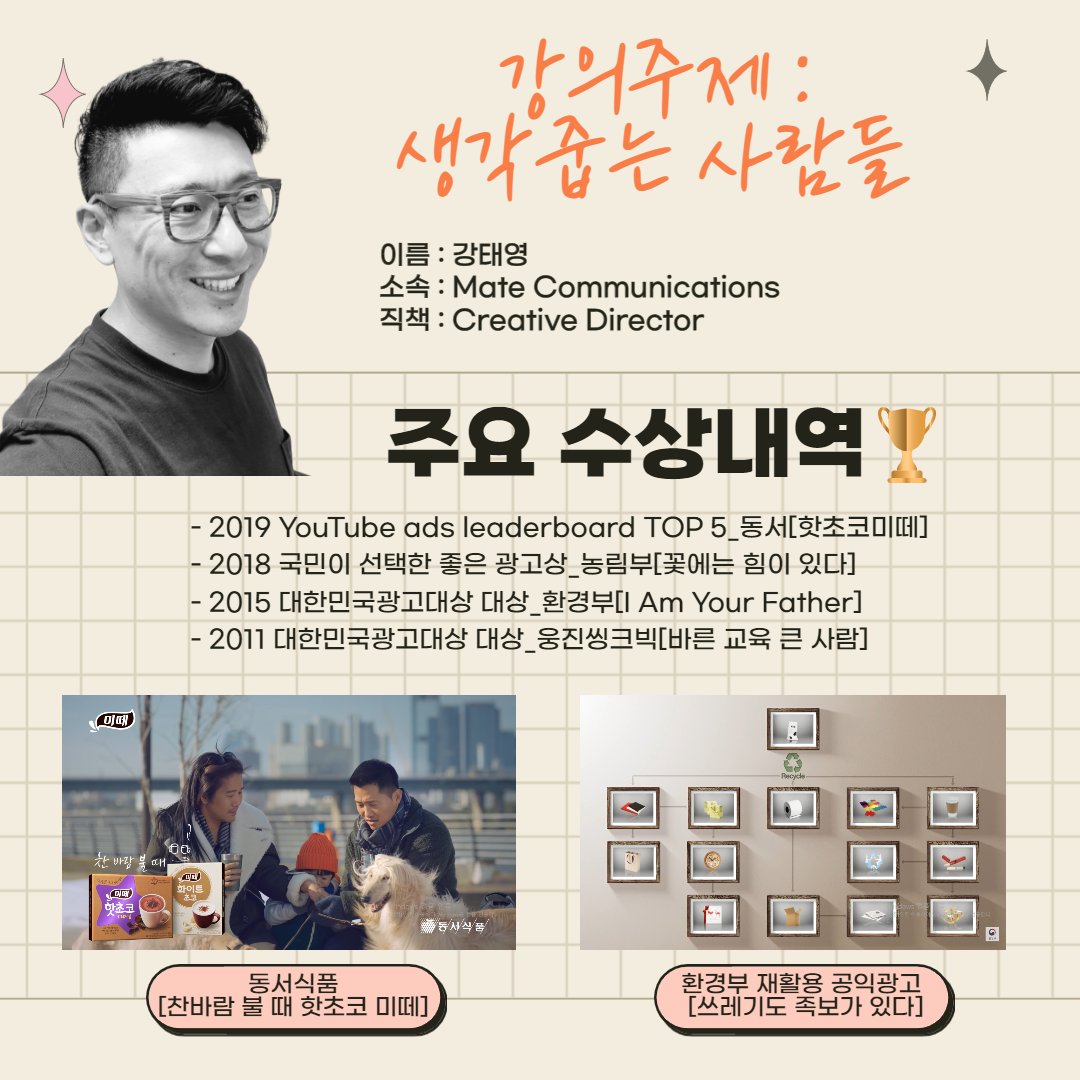 청소년 크리에이티브 공모전의 심사위원분들은 작품 심사뿐 아니라, 광고인을 꿈꾸는 모든 분들을 위한 온라인 강의도 직접 진행하시는데요👨🏫