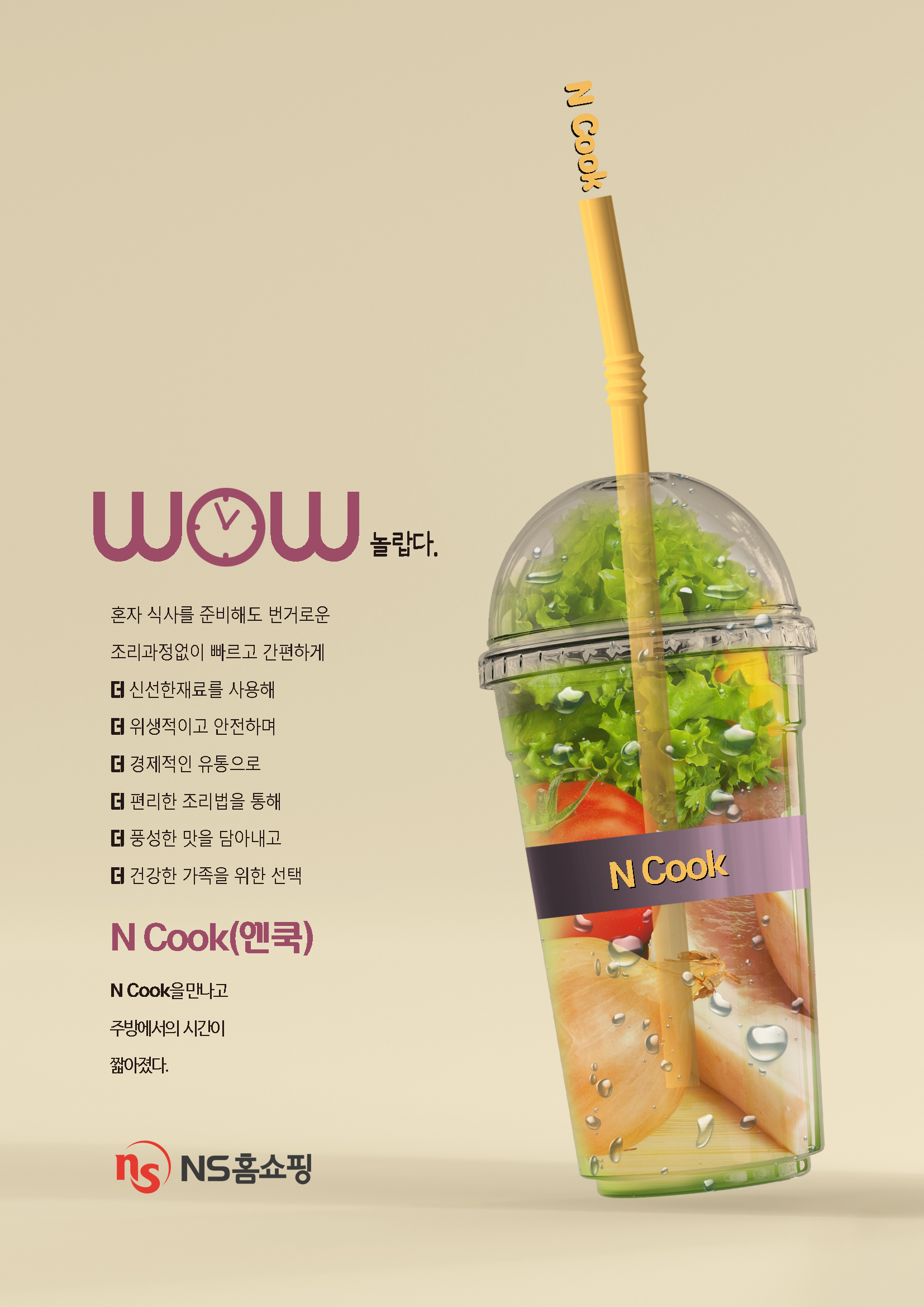 두 번째, <WOW 놀랍다>에서는 어머니 뿐만 아니라, 가족 구성원 나아가 1인 가구까지 누구나 쉽고 빠르게 식사를 준비할 수 있다는 점을 강조하기 위해 스트로우의 길이를 짧게 디자인했다고 합니다. 이렇게 간단하고 쉬운 엔쿡을 보면, 가족들의 감탄사가 절로 나오게 되는데, 이를 첫 번째 편의 'MOM'을 뒤집어 감탄사 'WOW'로 표현했다고 합니다.