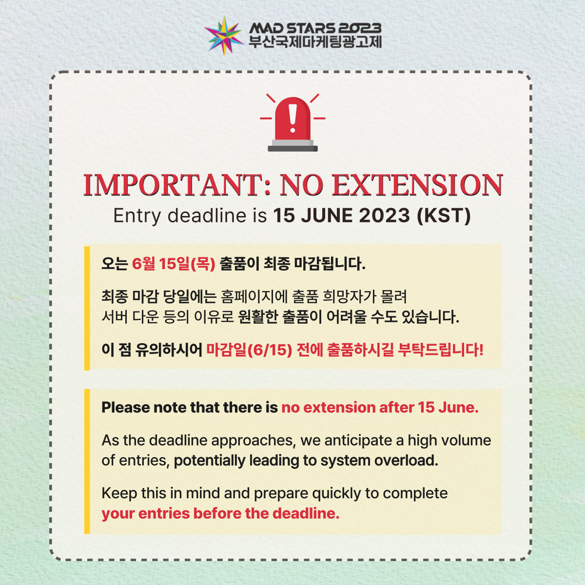[부산국제마케팅광고제|MAD STARS] IMPORTANT: NO EXTENSION⚠️