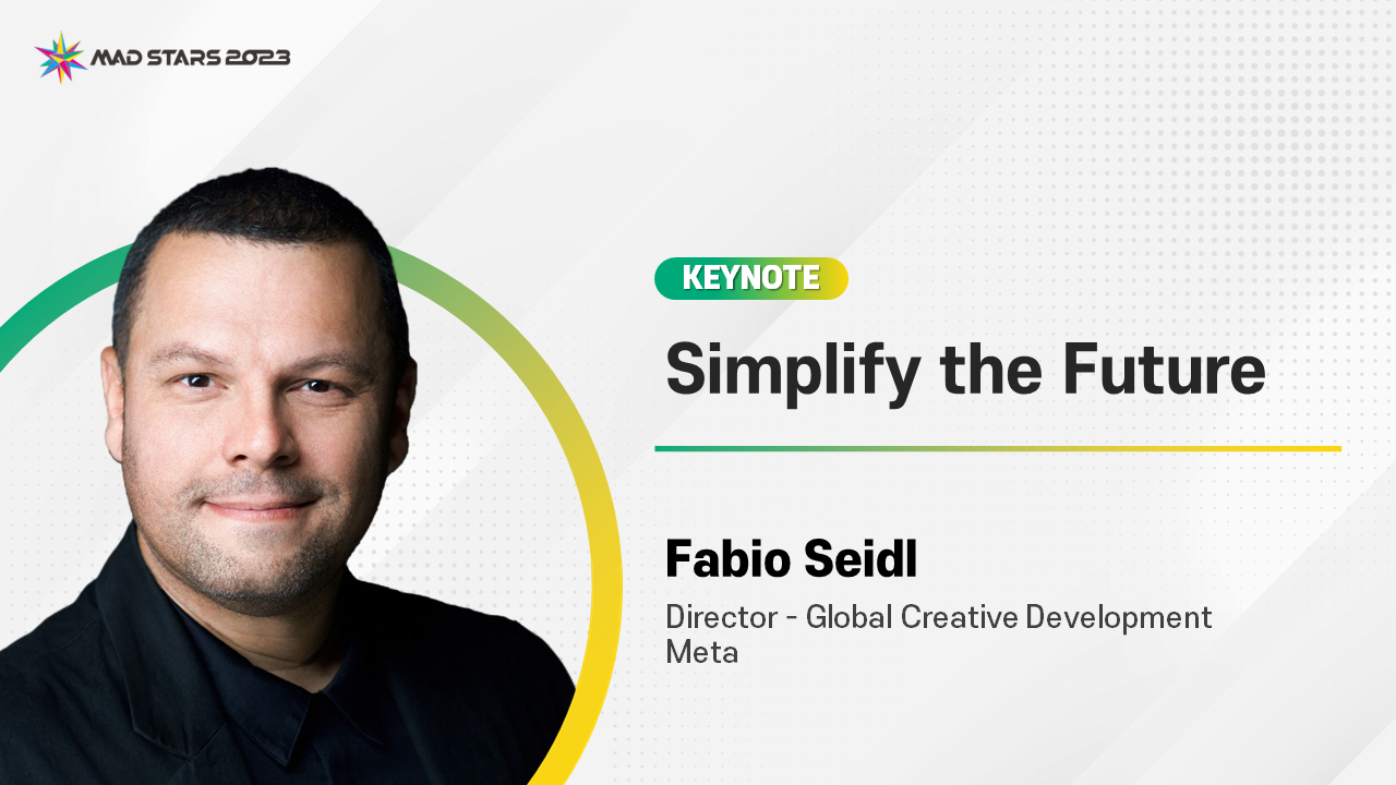 안녕하세요😊 글로 읽는 MAD STARS 2023 콘퍼런스입니다! 이번에는 MAD STARS 2023 콘퍼런스의 마지막을 장식한 세션이죠? 바로 메타(Meta)의 글로벌 크리에이티브 개발 디렉터인 파비오 세이들(Fabio Seidl)이 발표한 ‘미래를 단순하게’라는 세션에 대해 소개해보려고 합니다.