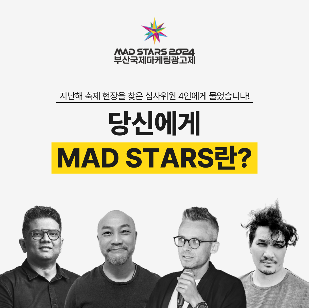 매년 대한민국 부산에서 개최되는 부산국제마케팅광고제(MAD STARS)는 아시아 태평양 지역 곳곳에서 참가자들이 모일 뿐 아니라, 멕시코와 사하라 이남 아프리카처럼 멀리 떨어진 곳의 심사위원들도 뜨거운 현장 분위기를 느끼고자 찾아오는 세계인의 축제인데요.