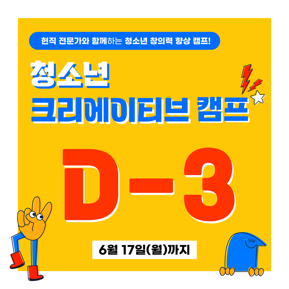 3일 뒤, 현직 전문가와 함께하는 청소년 창의력 향상 캠프 '2024 청소년 크리에이티브 캠프'의 접수가 마감됩니다⏰