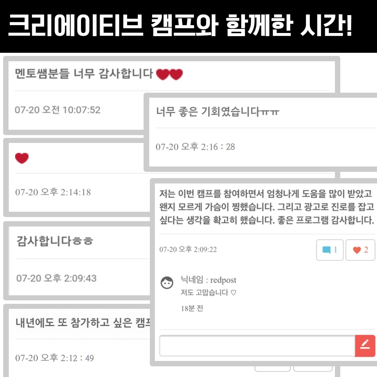 이번 기회를 통해서 광고의 꿈을 더욱 키울 수 있는 좋은 기회가 되었길 바랍니다.
