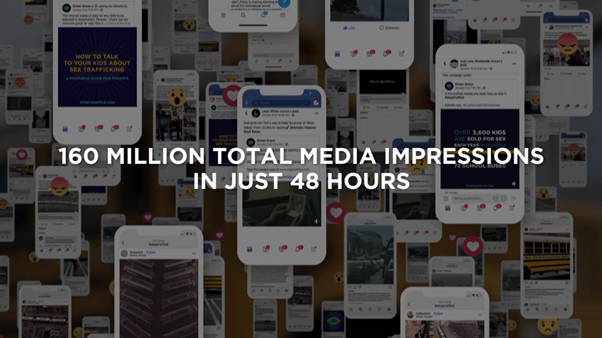 AWARENESS: Within 48 hours of the event, the stunt was covered in over 500 news stories, had 160M media impressions, 10.8K social media mentions & 42M social media impressions. #StopTraffick became a trending topic on Twitter & overall Stop Traffick media mentions went up 4,500%.