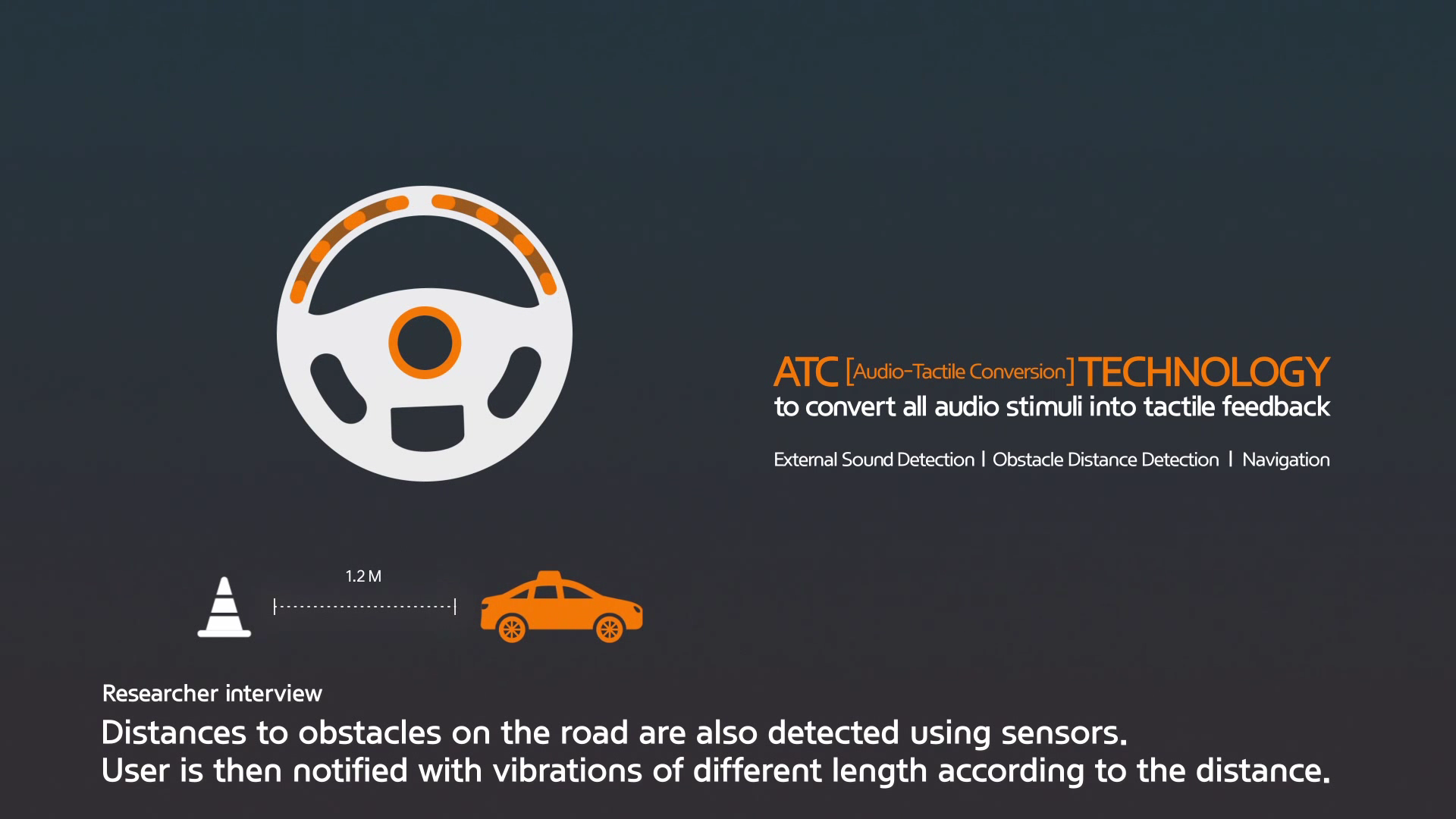 각종 소리를 구분해 휠의 LED와 픽토그램으로 전달하는 것이 이번 기술의 핵심입니다.