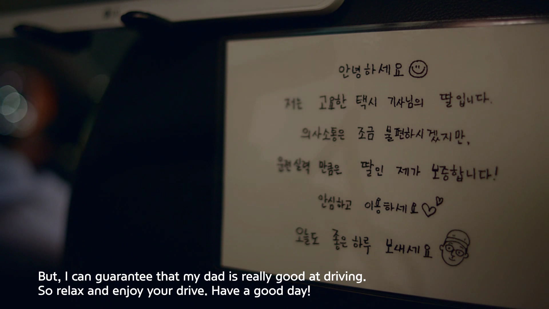 We focused on the fact that in Korea, it took 15 years for the hearing-impaired to attain the rights to drive a taxi. And found the story for "The Quiet Taxi" project from the letter Mr.Lee's daughter had left on the back seat of his car. Whose hearing-impaired father had recently challenged himself, despite his hurdle, to start a new taxi-driving career for his family.